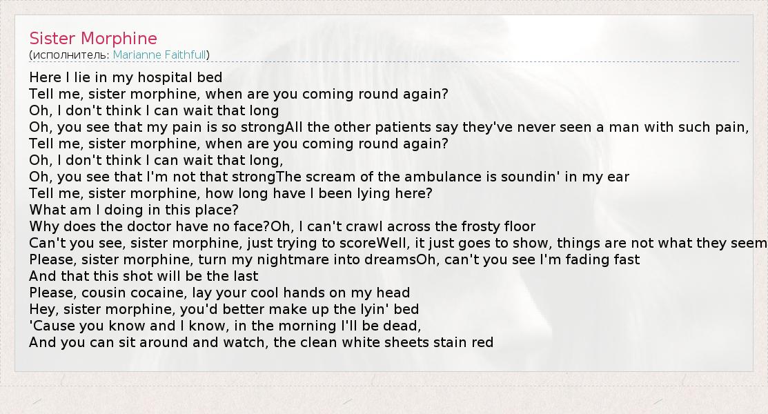А как ты думаешь, о чем песня "Sister Morphine" ?