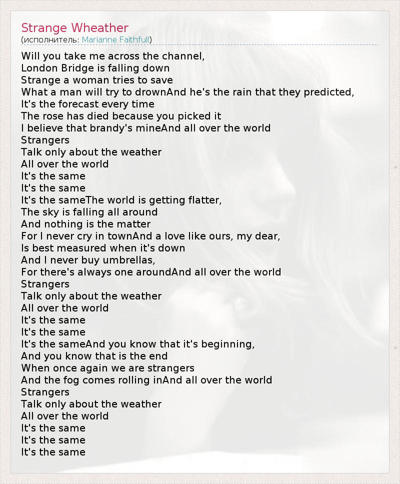 А как ты думаешь, о чем песня "Strange Wheather" ?