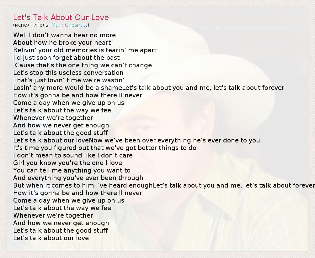 ГлавнаяИсполнителиMark ChesnuttLet's Talk About Our Love