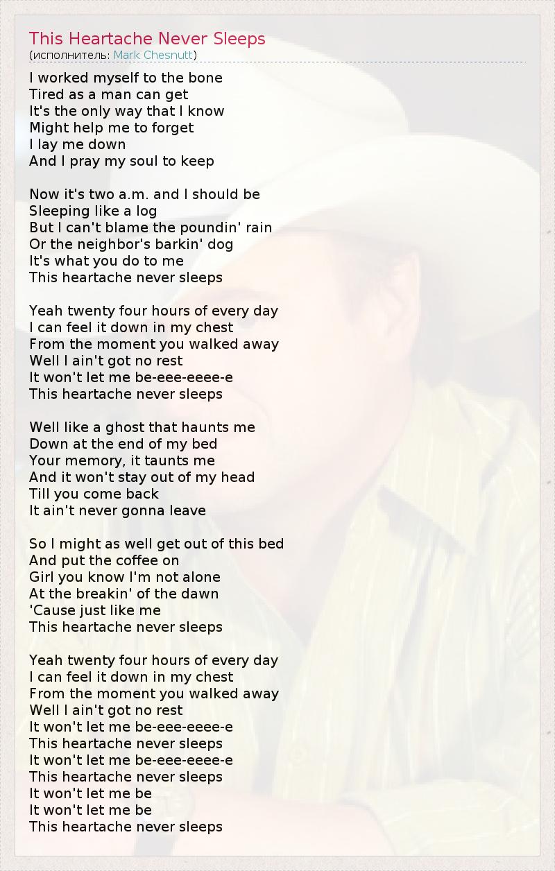 ГлавнаяИсполнителиMark ChesnuttThis Heartache Never Sleeps