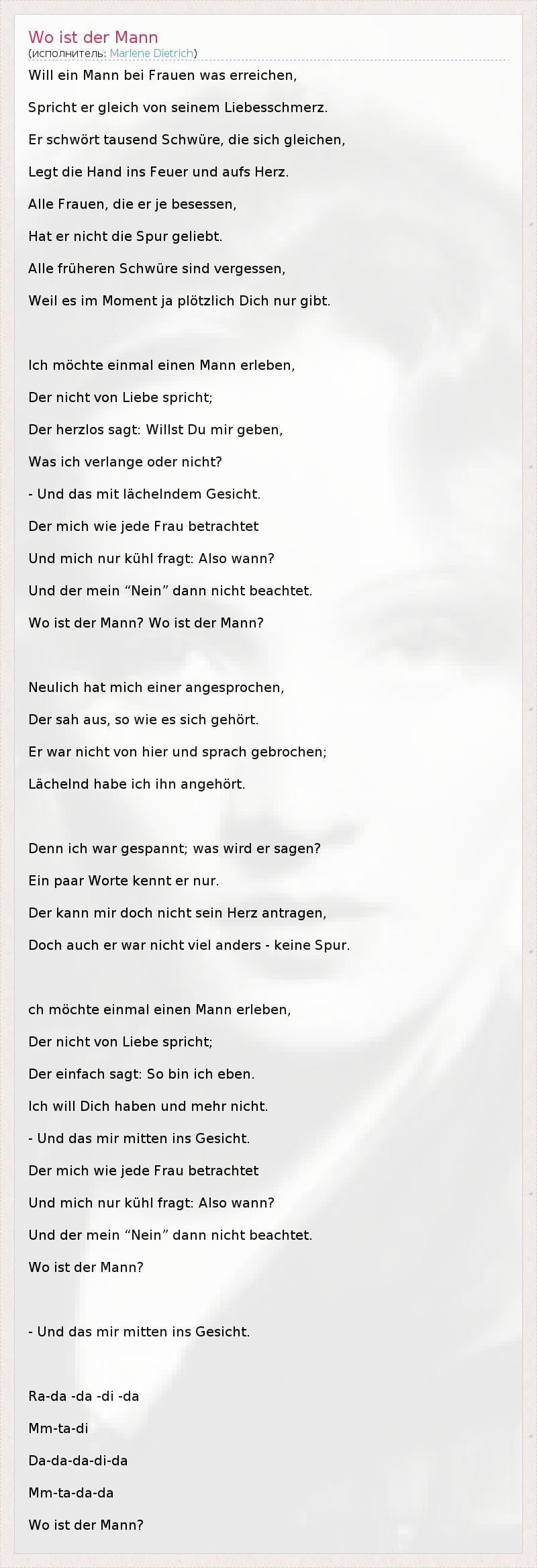 А как ты думаешь, о чем песня "Wo ist der Mann" ?