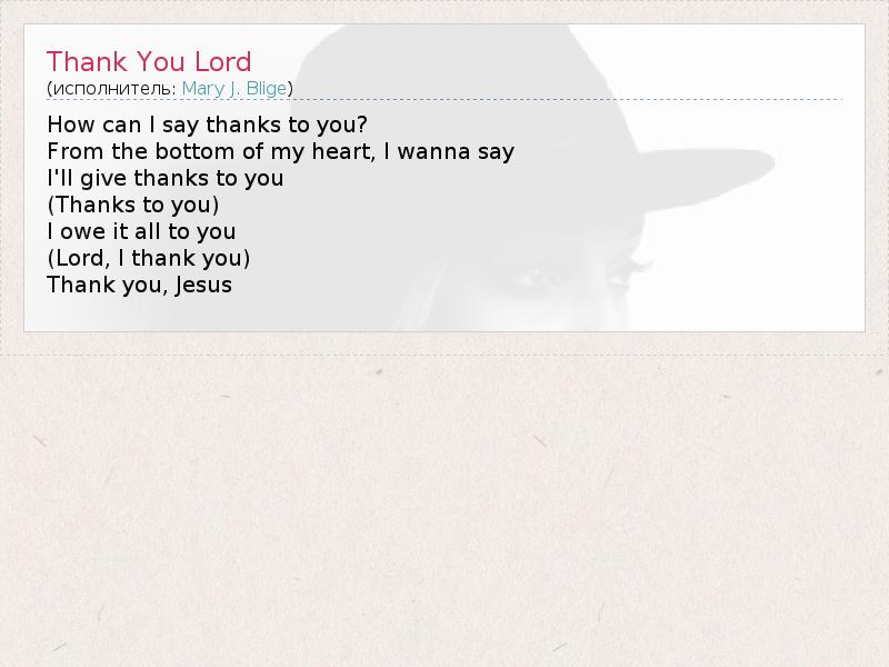 А как ты думаешь, о чем песня "Thank You Lord" ?