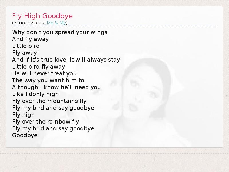 А как ты думаешь, о чем песня "Fly High Goodbye" ?