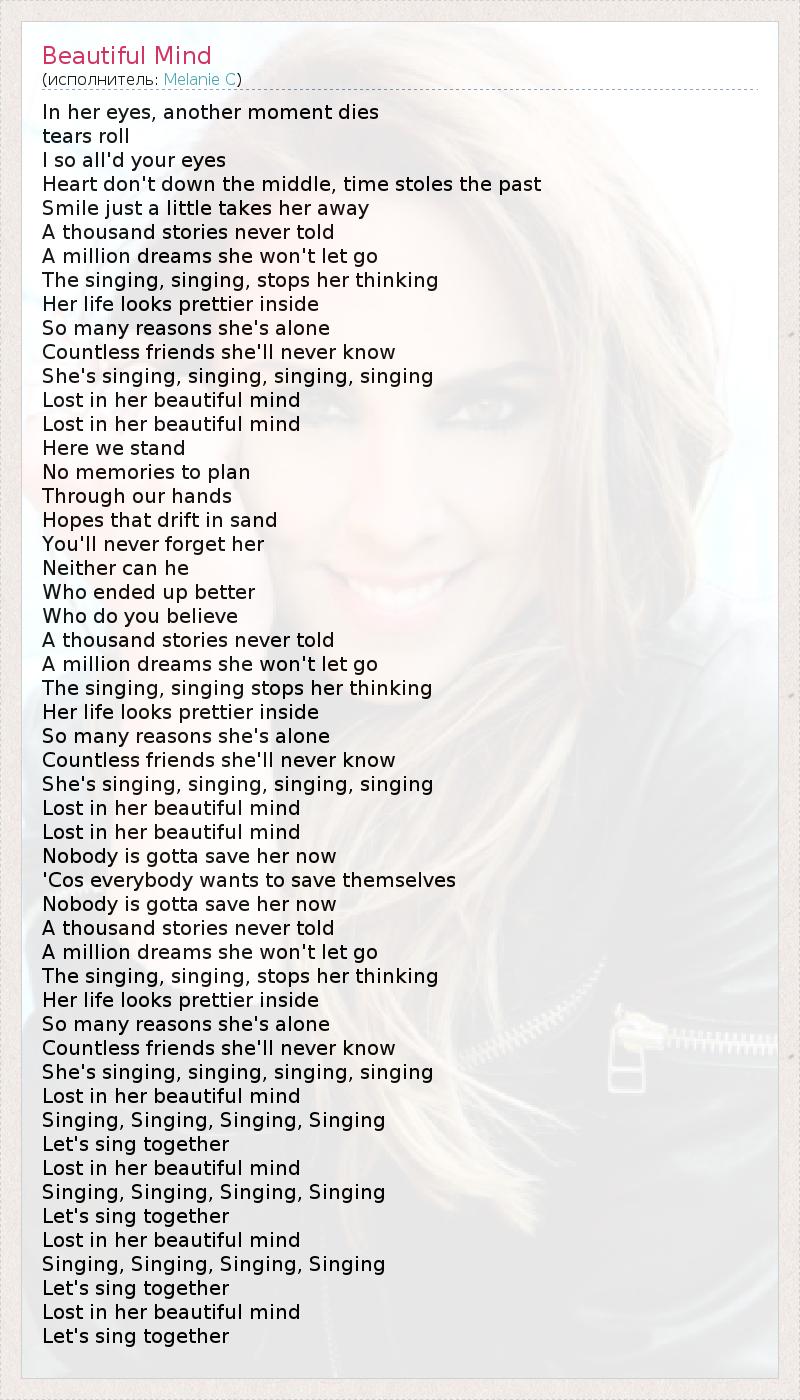 А как ты думаешь, о чем песня "Beautiful Mind" ?