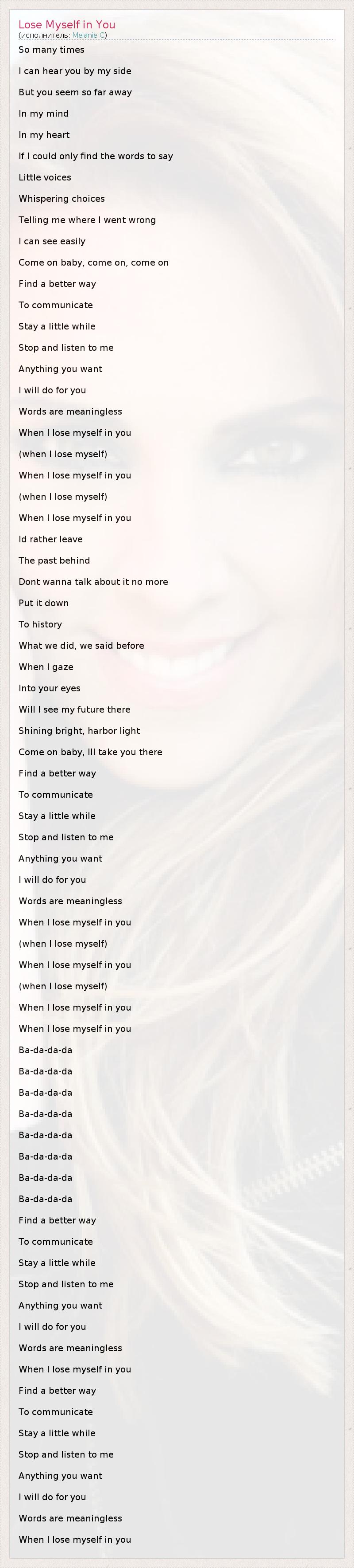 А как ты думаешь, о чем песня "Lose Myself in You" ?