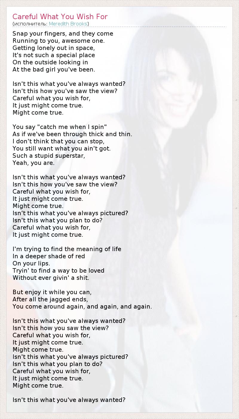 А как ты думаешь, о чем песня "Careful What You Wish For" ?