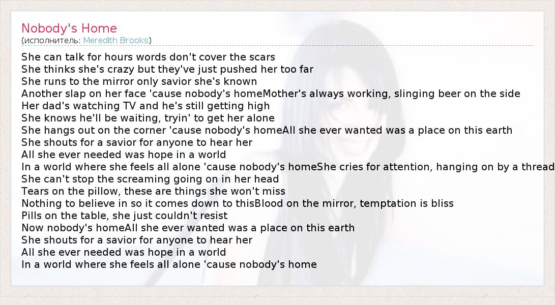 А как ты думаешь, о чем песня "Nobody's Home" ?
