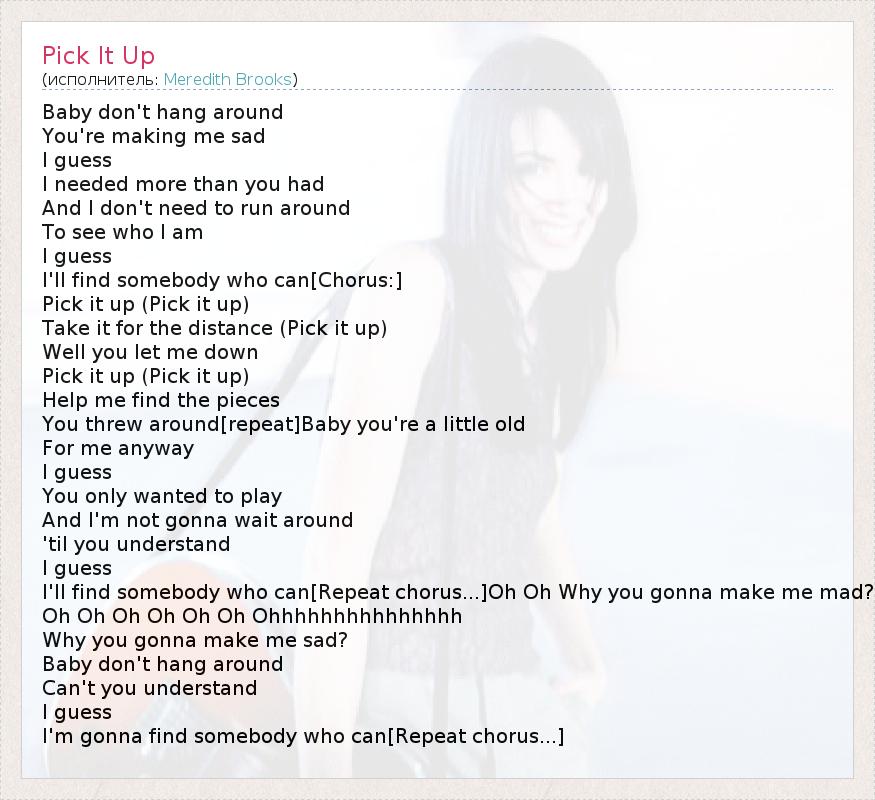 А как ты думаешь, о чем песня "Pick It Up" ?
