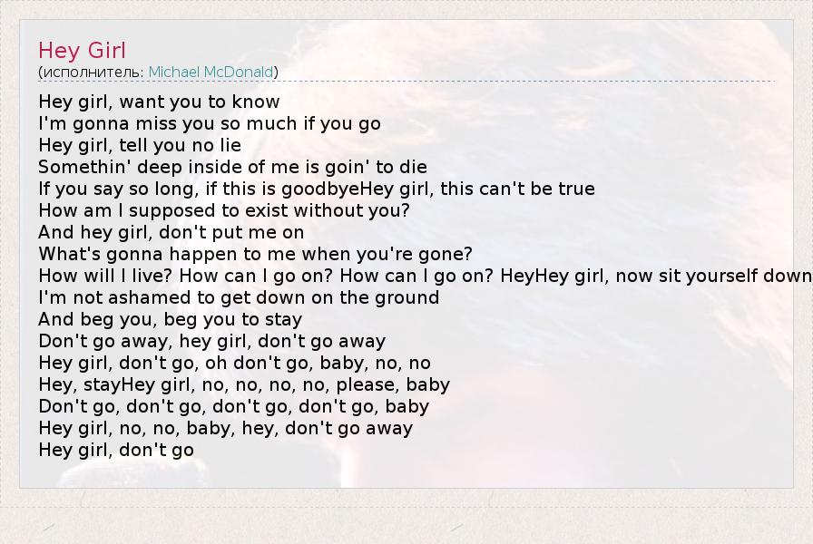 А как ты думаешь, о чем песня "Hey Girl" ?