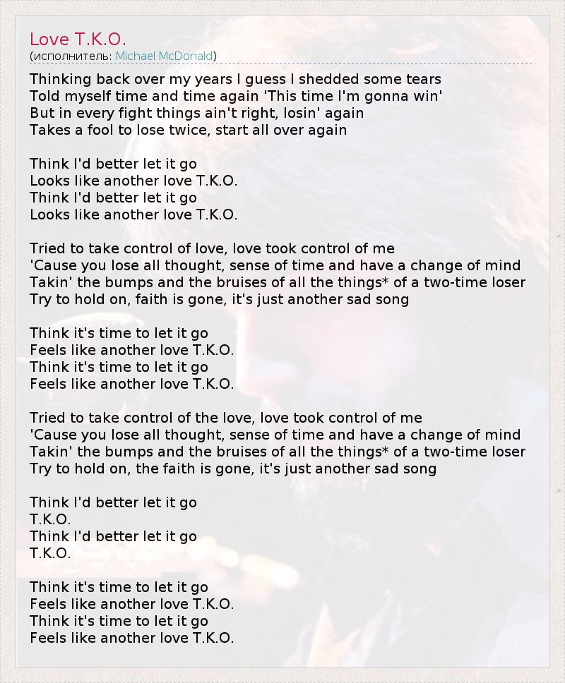 А как ты думаешь, о чем песня "Love T.K.O." ?