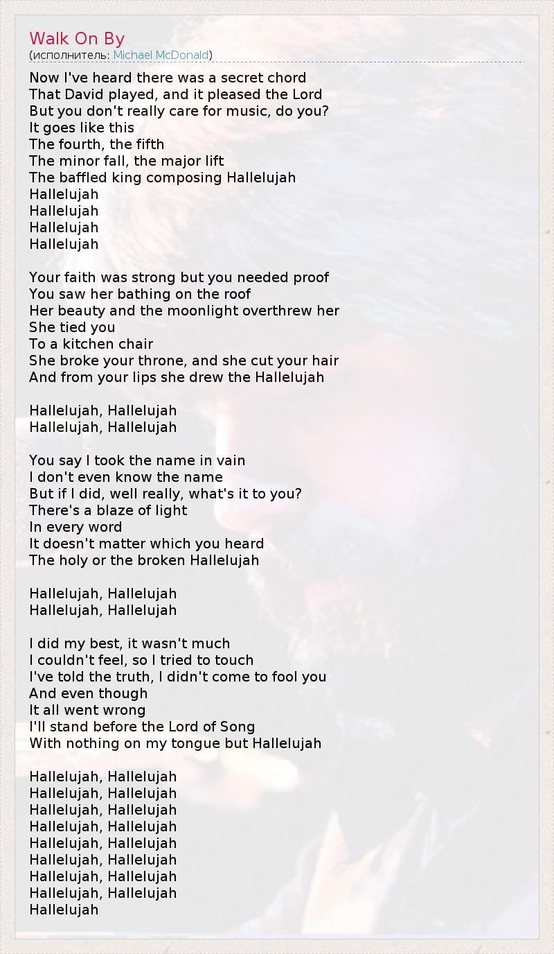 Это интересно:Соул- и ритм-н-блюз-певец Майкл Макдональд родился 12 февраля 1952-го в Сент-Луисе, штат Миссури. Его альбомы по числу продаж добивались 'золотого' и 'платинового' статусов. Иногда Майкла называют 'голубоглазым соул-исполнителем' и его отличительный 'певчий знак' – это 'хриплый, душевный' диапазон баритона. Он известен по своей работе в составе американских рок-групп... продолжение