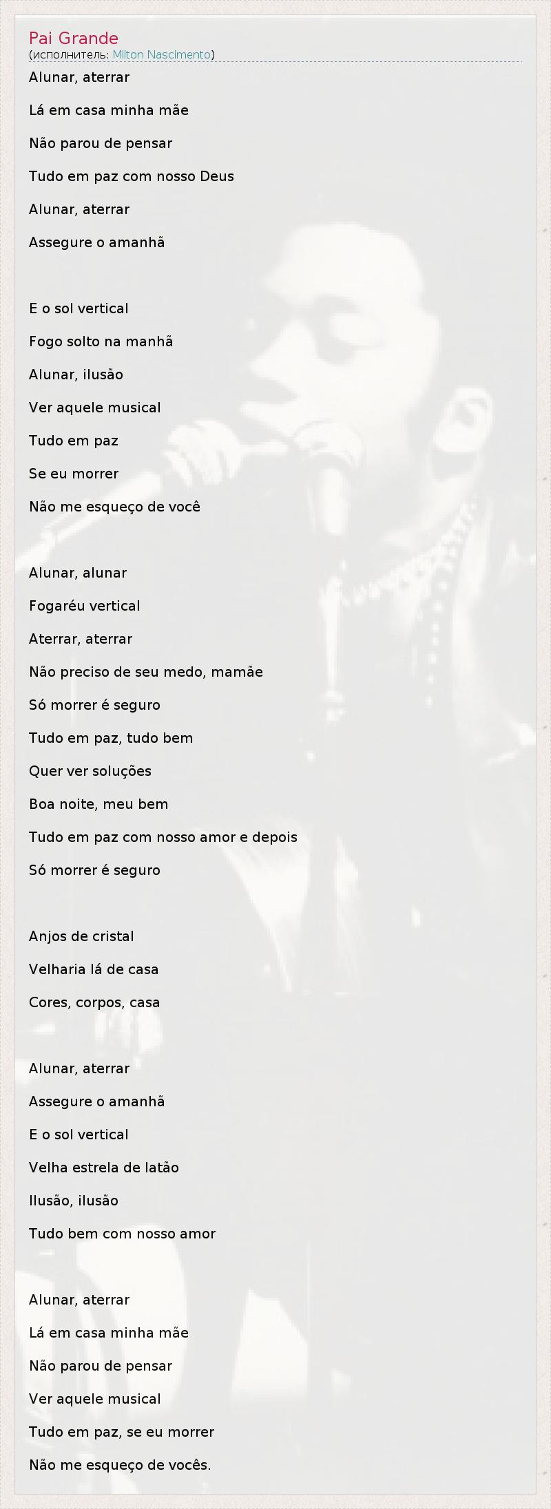 А как ты думаешь, о чем песня "Pai Grande" ?