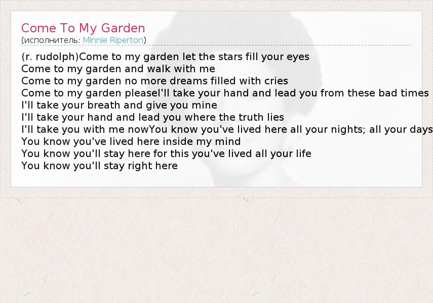 А как ты думаешь, о чем песня "Come To My Garden" ?