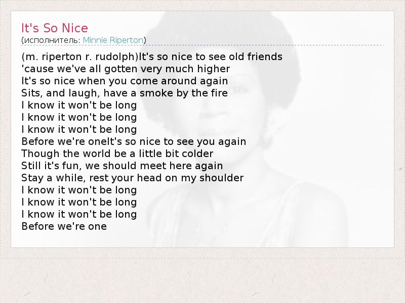 (m. riperton r. rudolph)It's so nice to see old friends