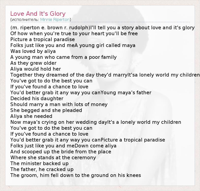 (m. riperton e. brown r. rudolph)I'll tell you a story about love and it's glory