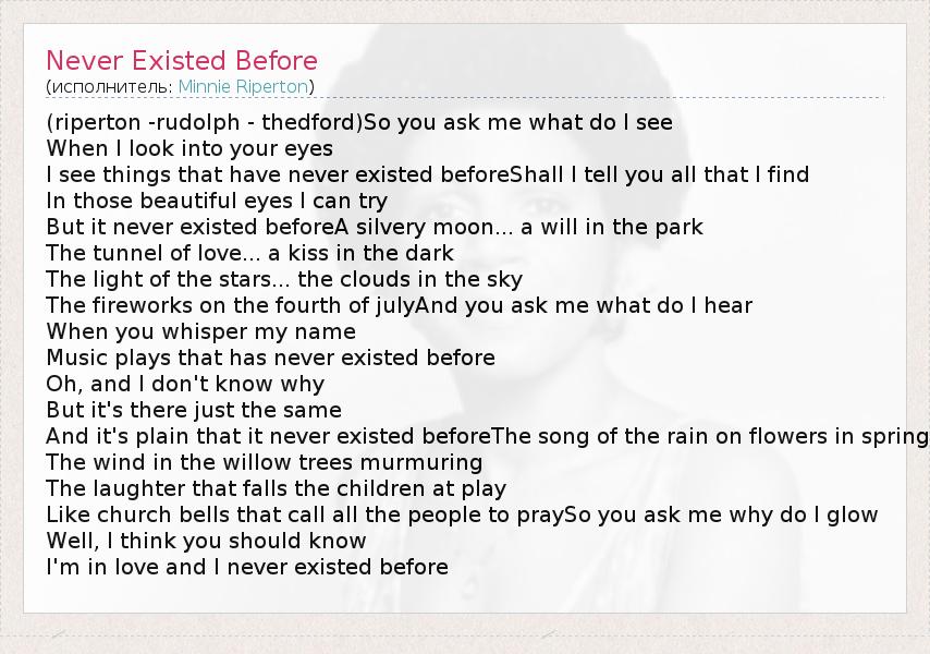 А как ты думаешь, о чем песня "Never Existed Before" ?