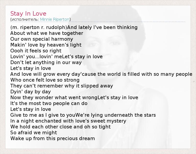 Let's stay in love