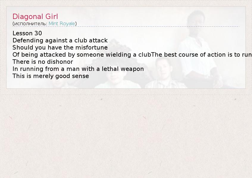 А как ты думаешь, о чем песня "Diagonal Girl" ?
