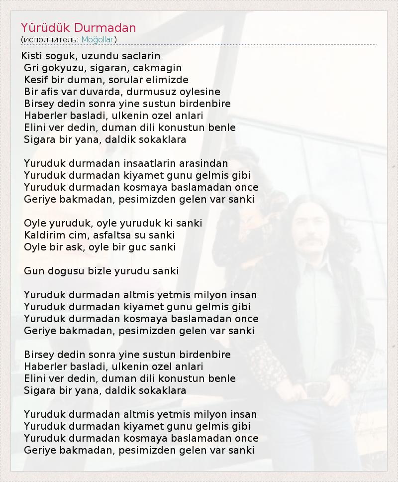 А как ты думаешь, о чем песня "Yürüdük Durmadan" ?
