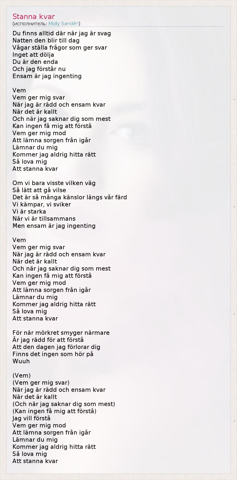 А как ты думаешь, о чем песня "Stanna kvar" ?