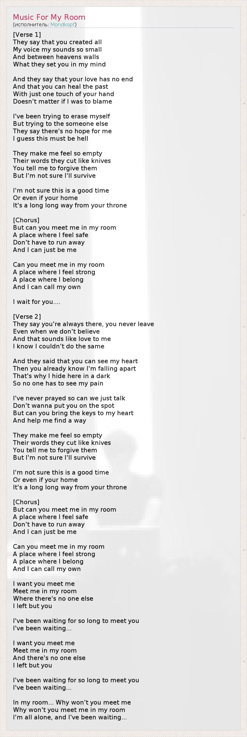 А как ты думаешь, о чем песня "Music For My Room" ?