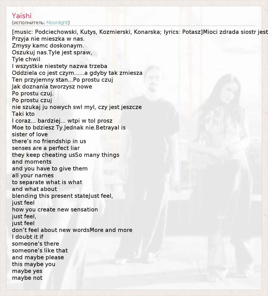 [music: Podciechowski, Kutys, Kozmierski, Konarska; lyrics: Potasz]Mioci zdrada siostr jest