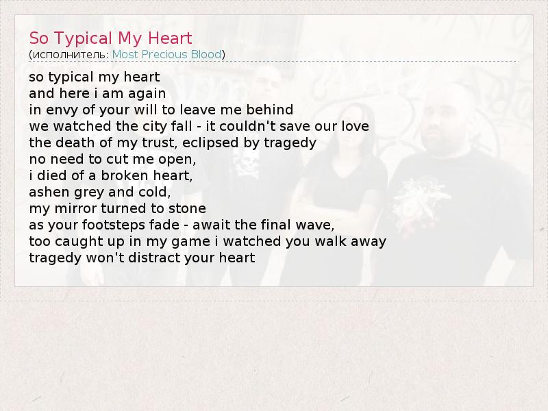 А как ты думаешь, о чем песня "So Typical My Heart" ?