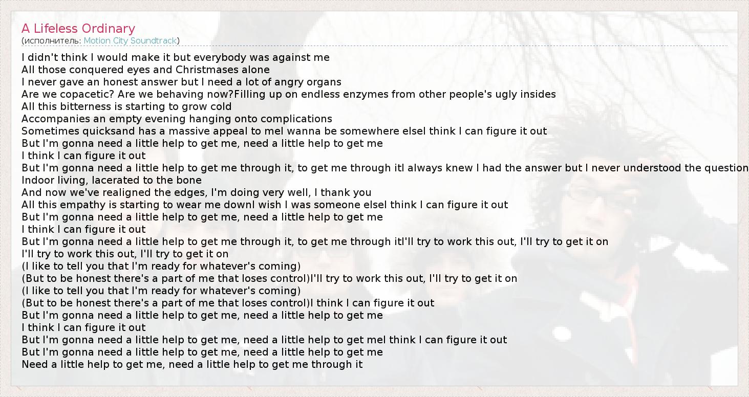 А как ты думаешь, о чем песня "A Lifeless Ordinary" ?
