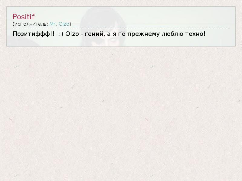 Позитиффф!!! :) Oizo - гений, а я по прежнему люблю техно!