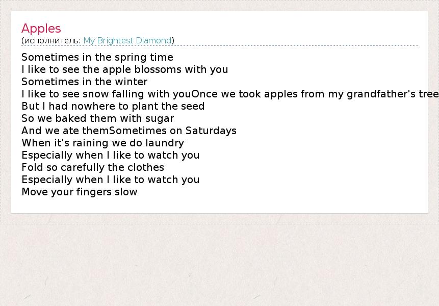I like to see snow falling with youOnce we took apples from my grandfather's tree