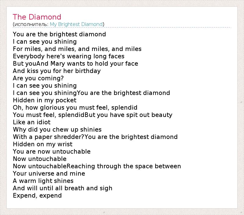 А как ты думаешь, о чем песня "The Diamond" ?