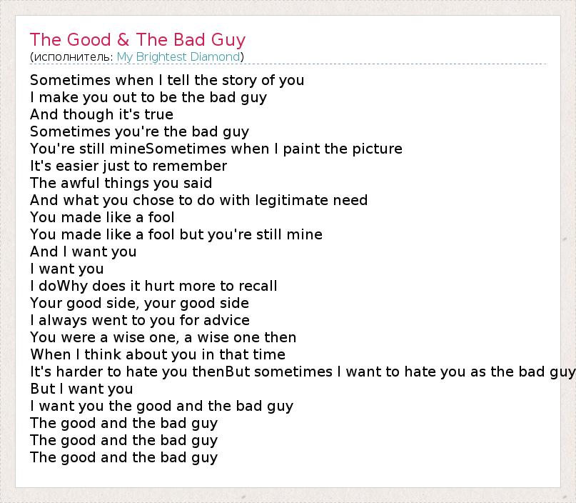 А как ты думаешь, о чем песня "The Good & The Bad Guy" ?