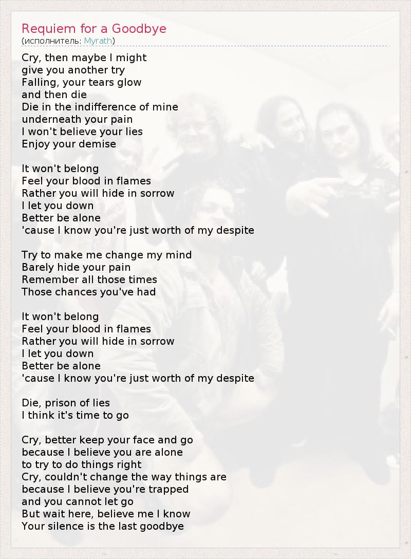 А как ты думаешь, о чем песня "Requiem for a Goodbye" ?