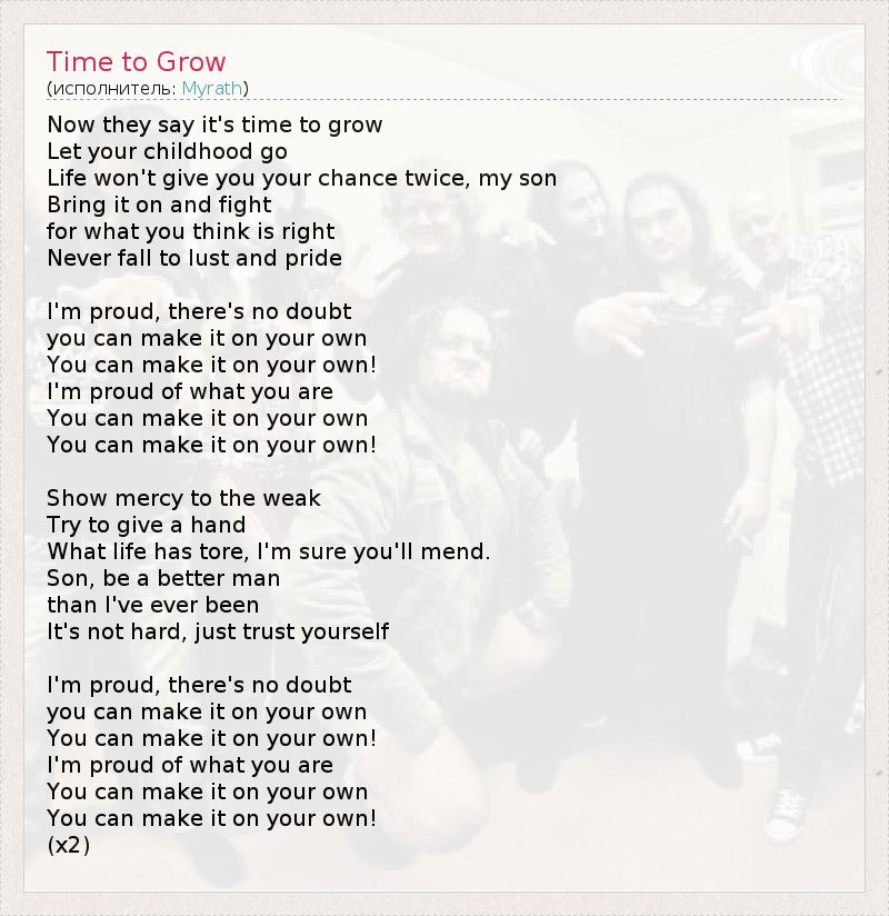 А как ты думаешь, о чем песня "Time to Grow" ?