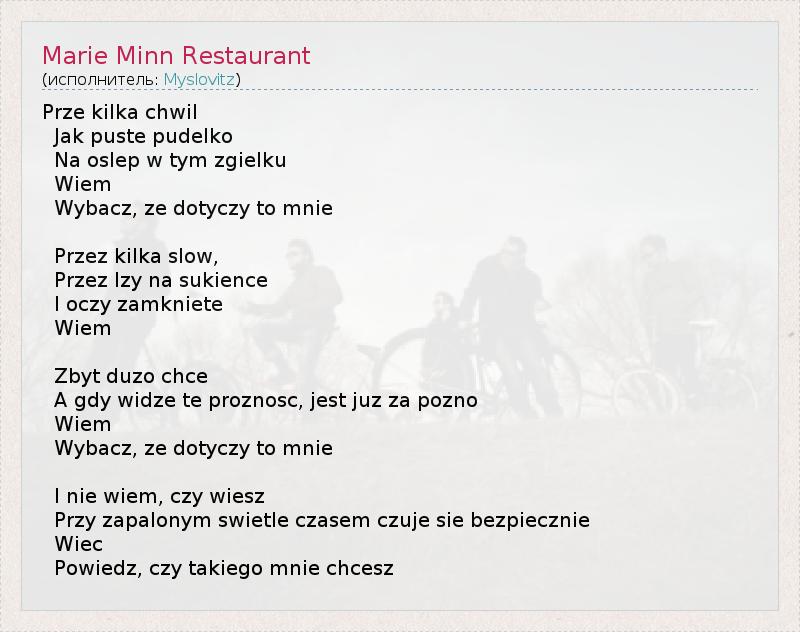 А как ты думаешь, о чем песня "Marie Minn Restaurant" ?