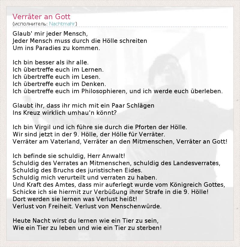 А как ты думаешь, о чем песня "Verräter an Gott" ?