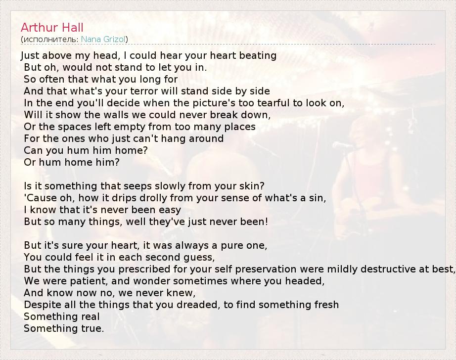 А как ты думаешь, о чем песня "Arthur Hall" ?