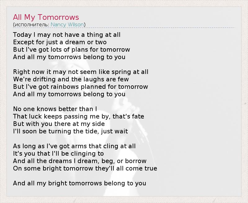 А как ты думаешь, о чем песня "All My Tomorrows" ?