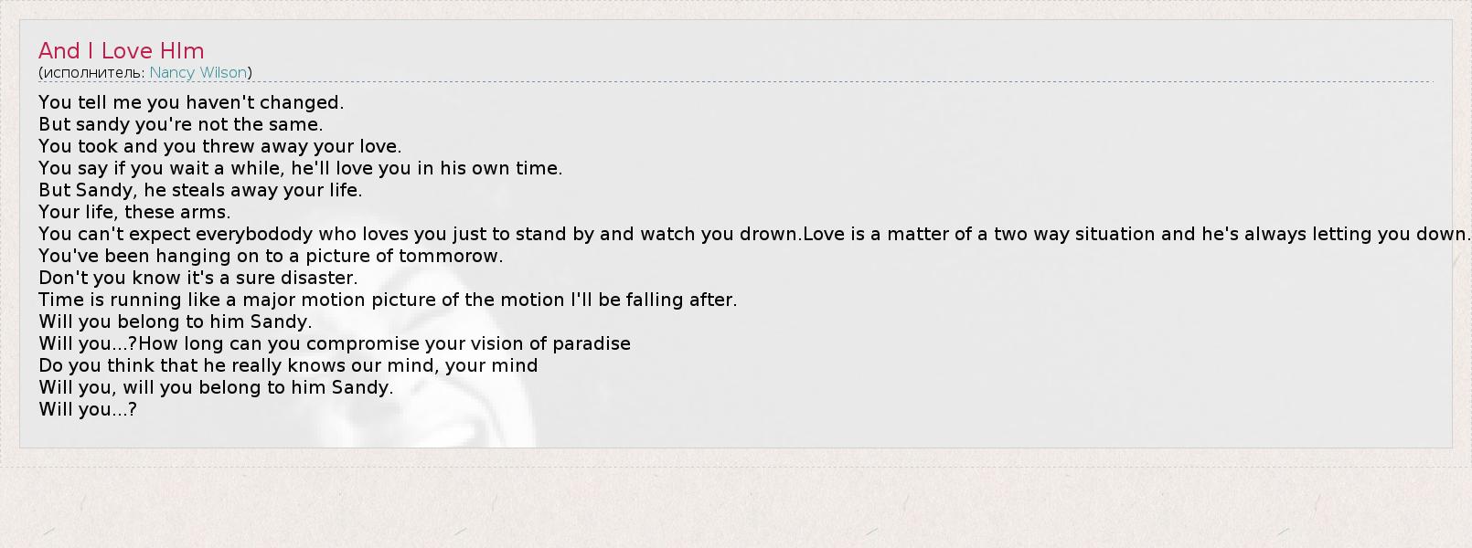 А как ты думаешь, о чем песня "And I Love HIm" ?