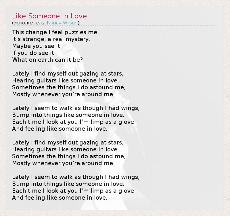 А как ты думаешь, о чем песня "Like Someone In Love" ?
