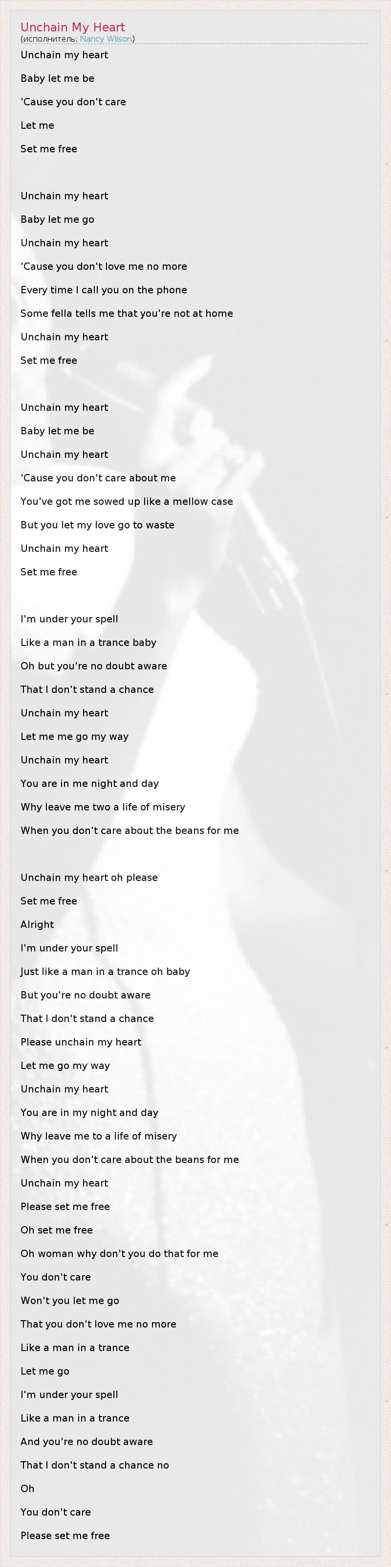 А как ты думаешь, о чем песня "Unchain My Heart" ?