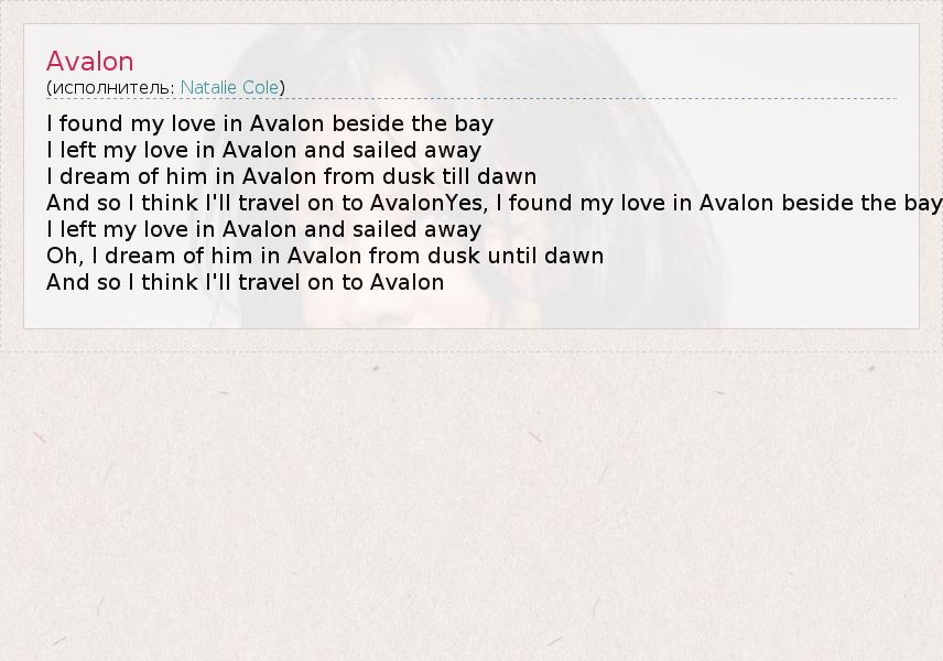 And so I think I'll travel on to AvalonYes, I found my love in Avalon beside the bay
