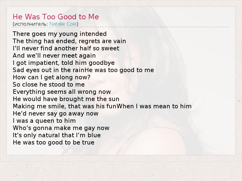 А как ты думаешь, о чем песня "He Was Too Good to Me" ?