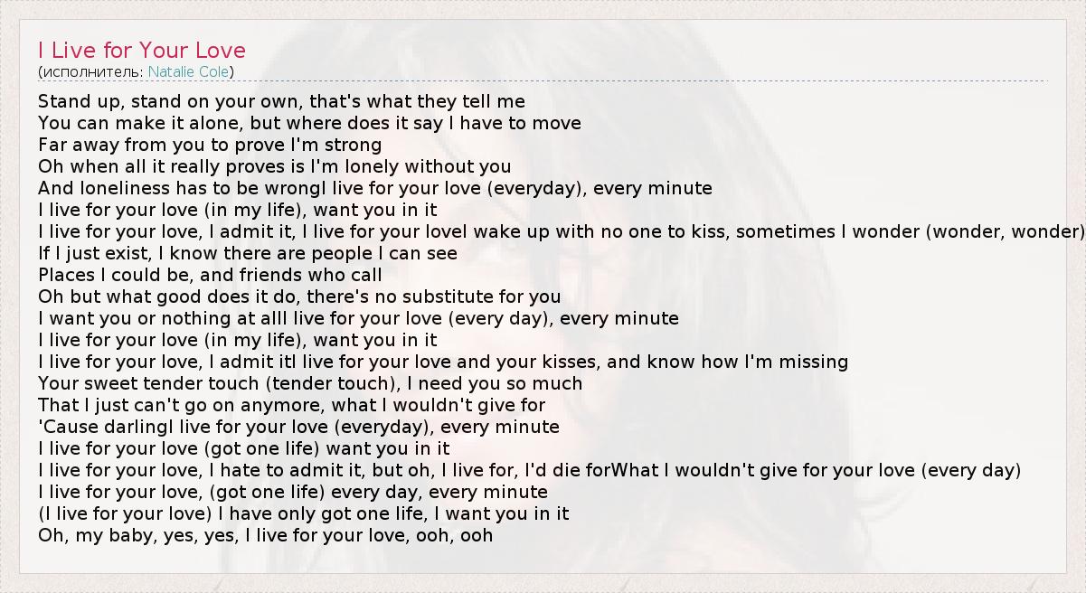 А как ты думаешь, о чем песня "I Live for Your Love" ?