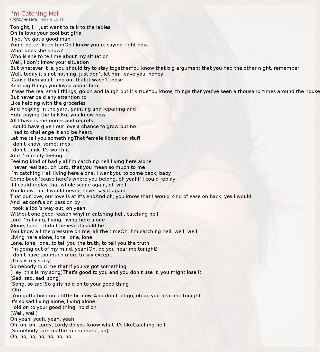 А как ты думаешь, о чем песня "I'm Catching Hell" ?
