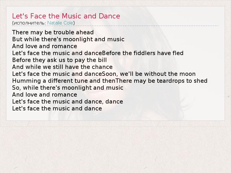 А как ты думаешь, о чем песня "Let's Face the Music and Dance" ?