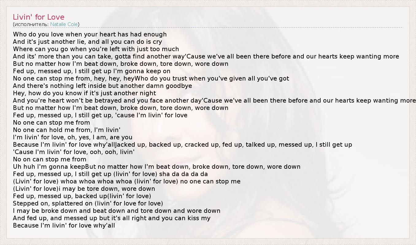 А как ты думаешь, о чем песня "Livin' for Love" ?