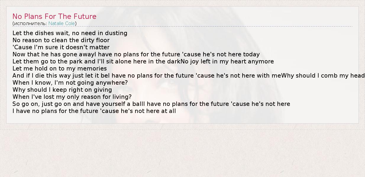ГлавнаяИсполнителиNatalie ColeNo Plans For The Future