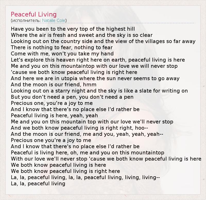 А как ты думаешь, о чем песня "Peaceful Living" ?