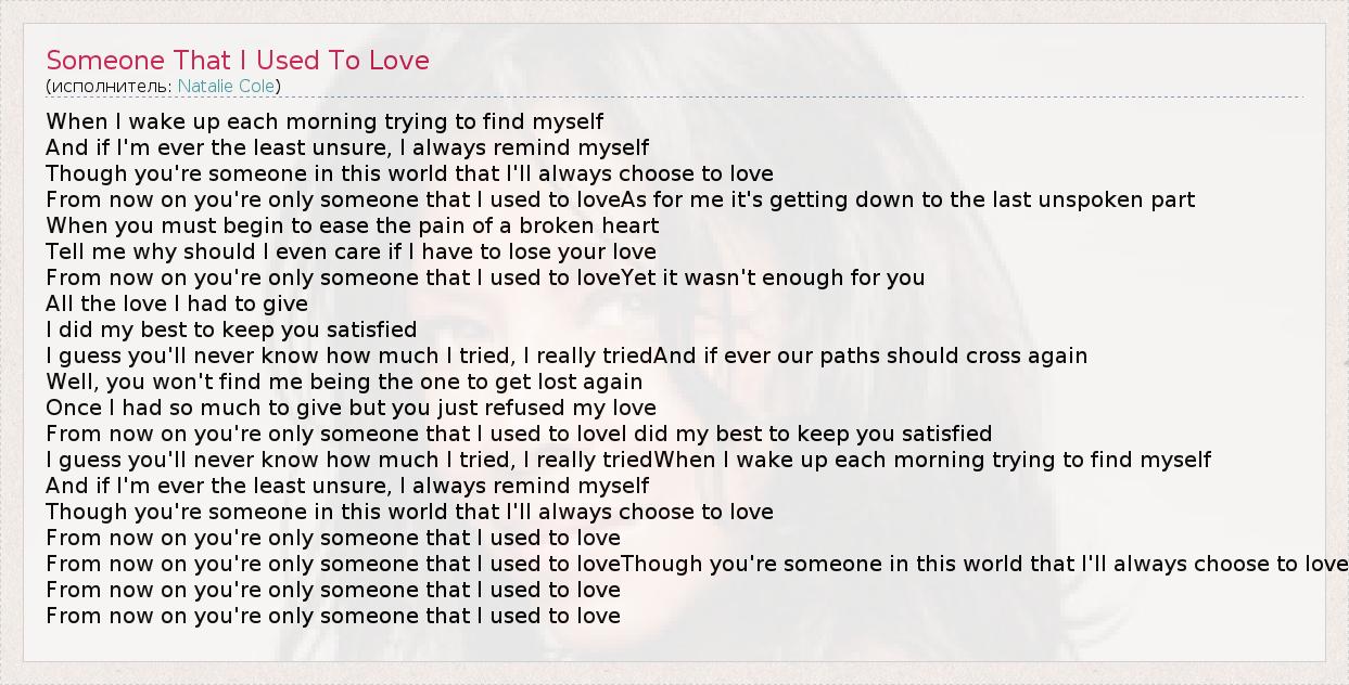 ГлавнаяИсполнителиNatalie ColeSomeone That I Used To Love
